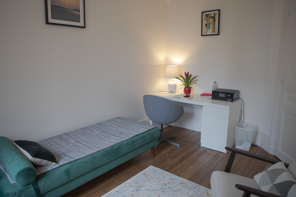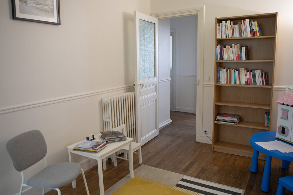Le cabinet, au 1er étage sans ascenseur, via l’escalier de droite (dans le hall), dispose d’une salle d’attente.